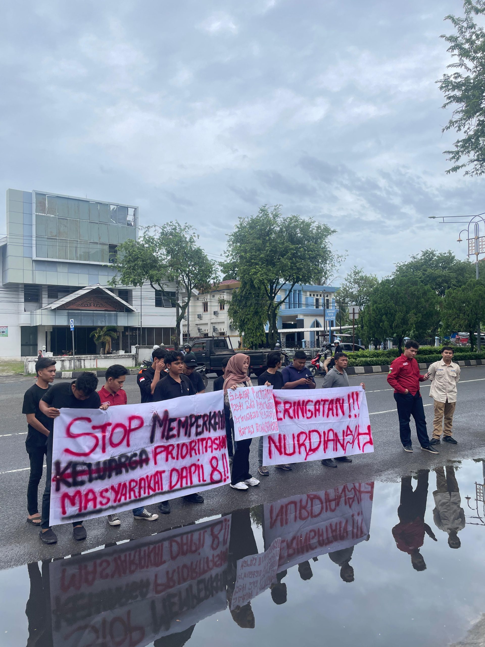 Aksi demo pelajar dan mahasiswa yang tergabung dalam Ikatan Mahasiswa Pelajar Aceh Tenggara (IPMAT) tersebut berlangsung di depan gedung kantor DPRA. Demo yang digelar di mulai pukul 15.00 WIB, sejumlah massa membawa spanduk bertuliskan ”jangan memperkaya keluarga prioritaskan masyarakat Dapil VIII”, “Stop mementingkan keluarga” dan “Peringatan Nurdiansyah”.