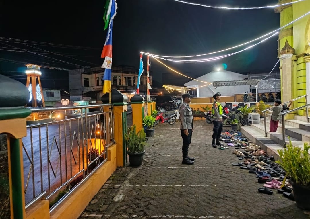 Selain menjaga keamanan, personel juga memberikan imbauan kepada masyarakat agar tetap waspada terhadap potensi tindak kriminal serta menjaga ketertiban selama bulan suci ini.