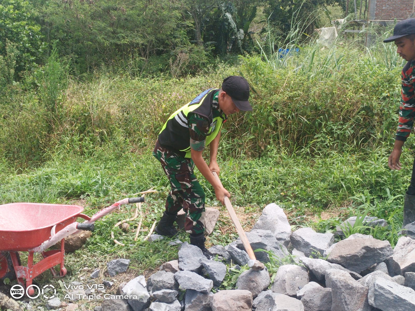 Kegiatan tersebut dilakukan Babinsa, saat melihat salah satu warga yang sedang memecahkan material batu untuk pembangunan pondasi, Seketika itu Babinsa langsung sigap mengambil alih martil yang digunakan untuk membantu bapak pardi.