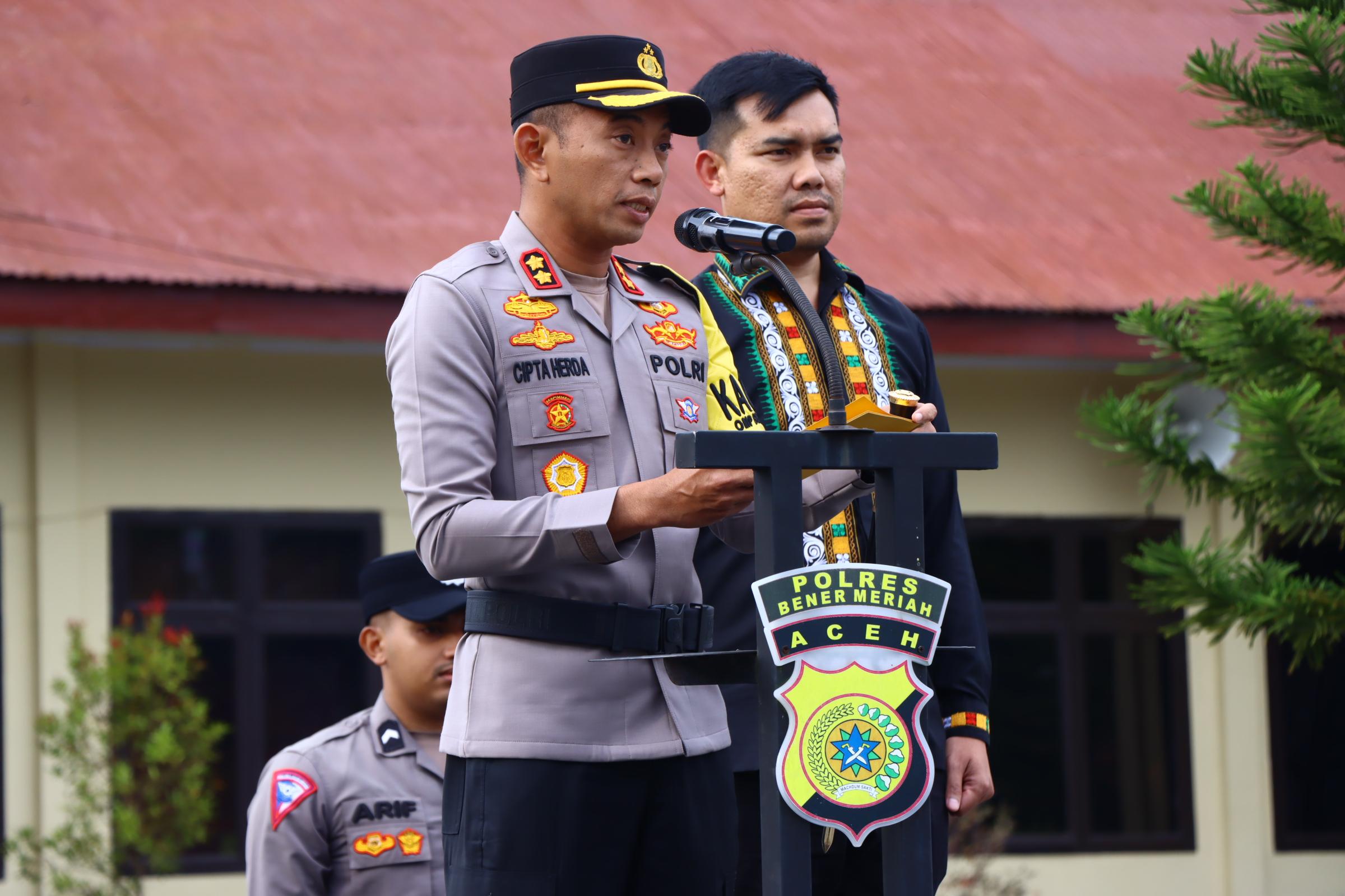 Apel tersebut dihadiri oleh seluruh PJU Polres Bener Meriah beserta Forkompinda dan diikuti oleh personel TNI-Polri , Senkom, Dishub, Satpol PP, BPBD, dan mitra kamtibmas.