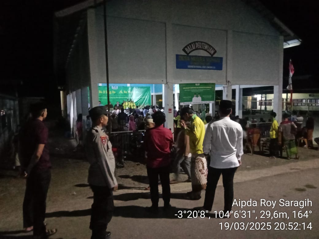 PALI – Polsek Tanah Abang memastikan keamanan jalannya Tablig Akbar sekaligus Penutupan Safari Ramadhan yang digelar oleh UKMK Lembaga Pengembangan Tilawatul Qur’an dan Dakwah Mahasiswa Universitas Islam Negeri (UIN) Raden Fatah Palembang di Gedung Serbaguna Desa Muara Sungai, Kecamatan Tanah Abang, Kabupaten PALI pada Rabu (19/3/2025) malam.