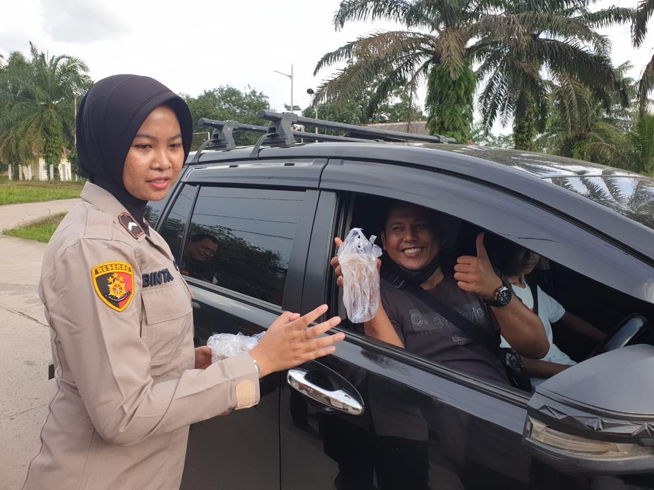 Sekira pukul 17.30 WIB, jajaran kepolisian membagikan ratusan paket takjil kepada masyarakat dan pengendara yang melintas di depan Mapolsek Penukal Abab.