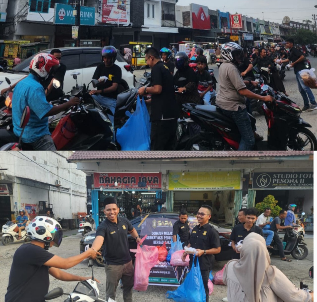 Kegiatan yang dipimpin langsung oleh Ketua, Fauzan Adami, didampingi oleh KaDiv Humas Muhammad Rifqi Maulana, KaDiv Sosial, Agusliza, Kadiv Pemuda Rifki Randa serta jajaran pengurus dan anggota SAPA lainnya, berhasil menyalurkan 350 paket takjil kepada warga yang melintas.