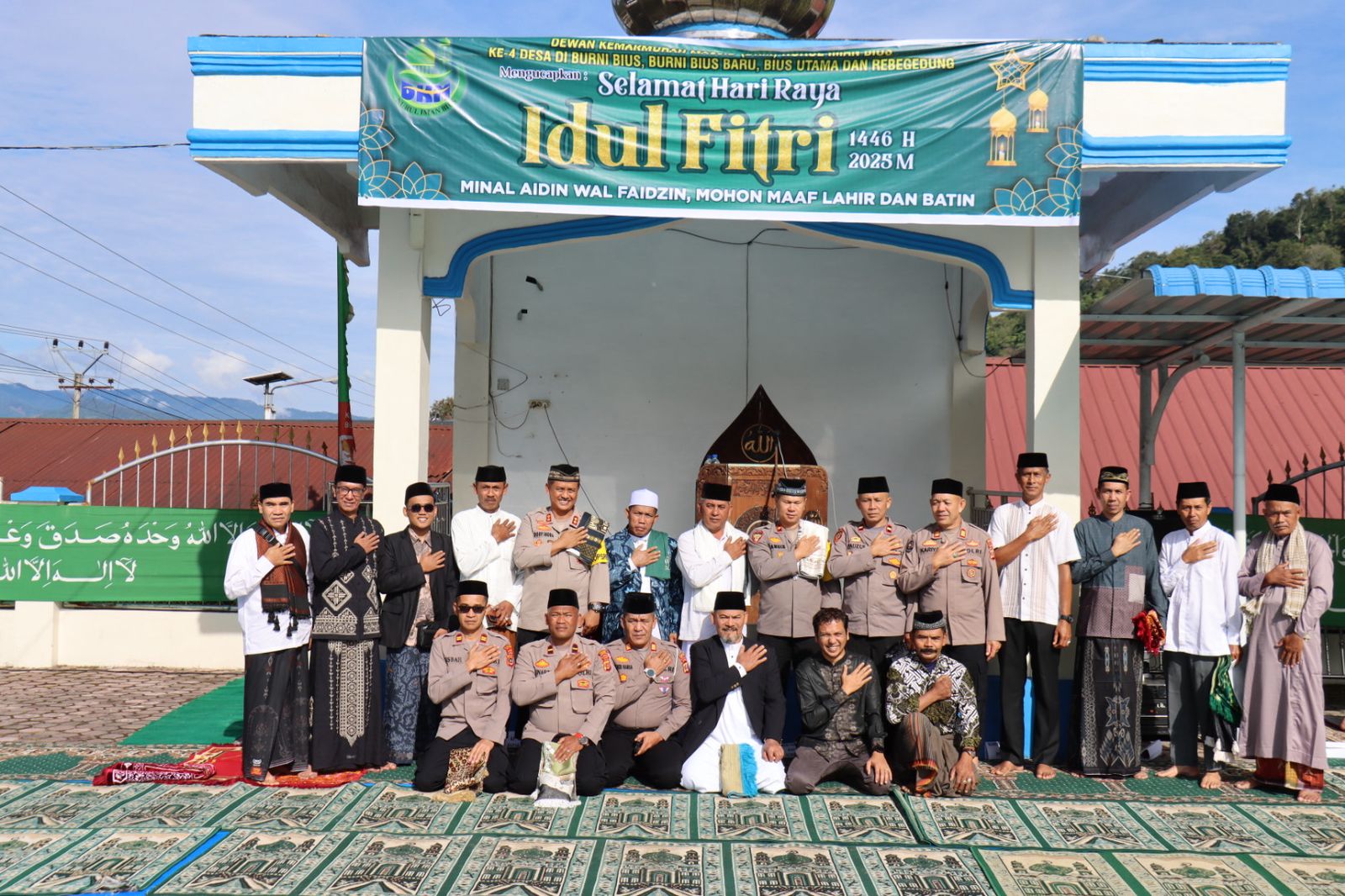 Hadir dalam Shalat Ied tersebut Pejabat Utama (PJU) Polres Aceh Tengah dan masyarakat setempat.