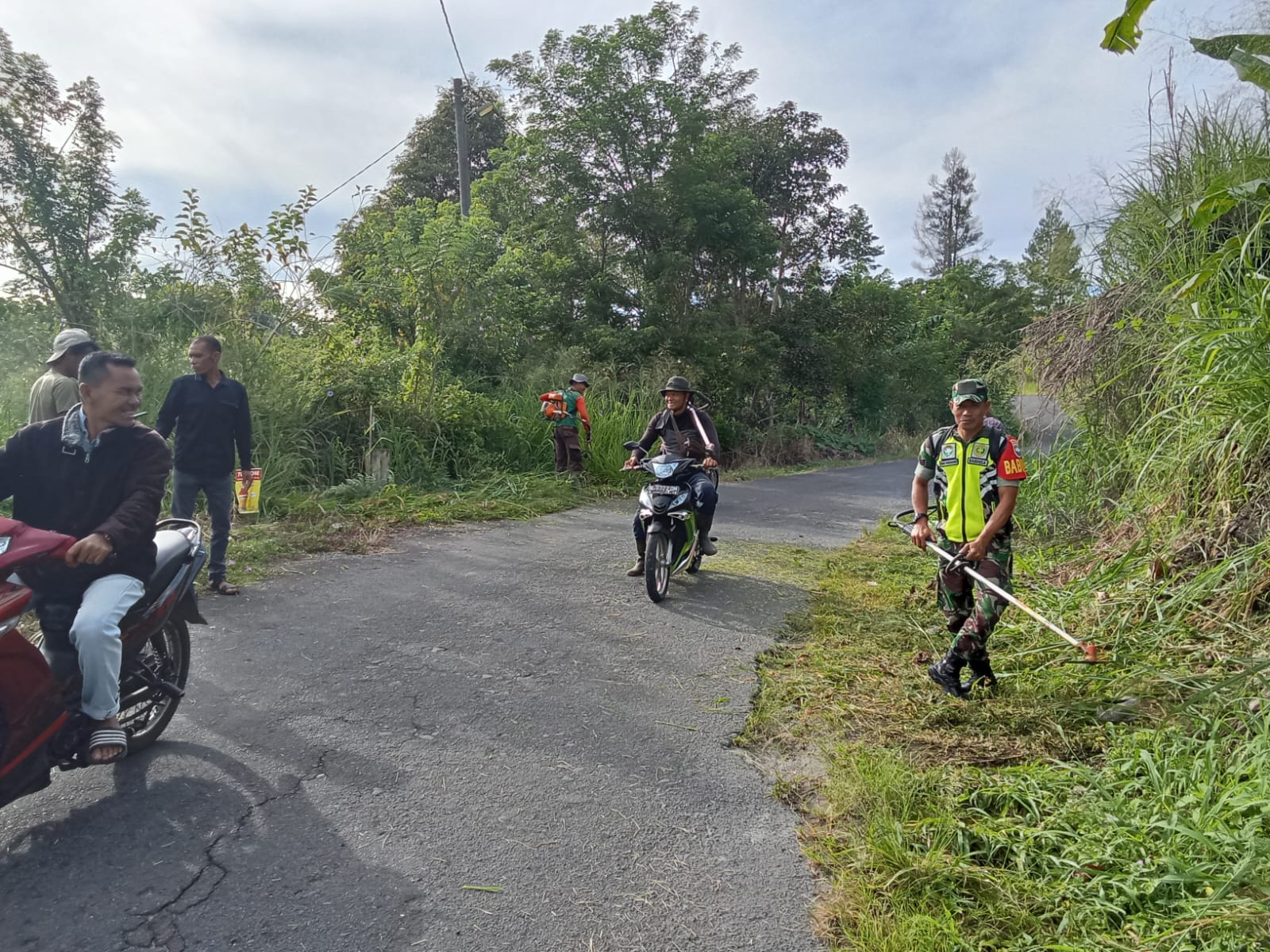 Komandan Koramil 03/TG Kapten Czi Aep Mukharan Halid melalui Babinsa mengatakan”Gotong royong tersebut bertujuan untuk membersihkan kanan kiri jalan dari rumput liar, sehigga