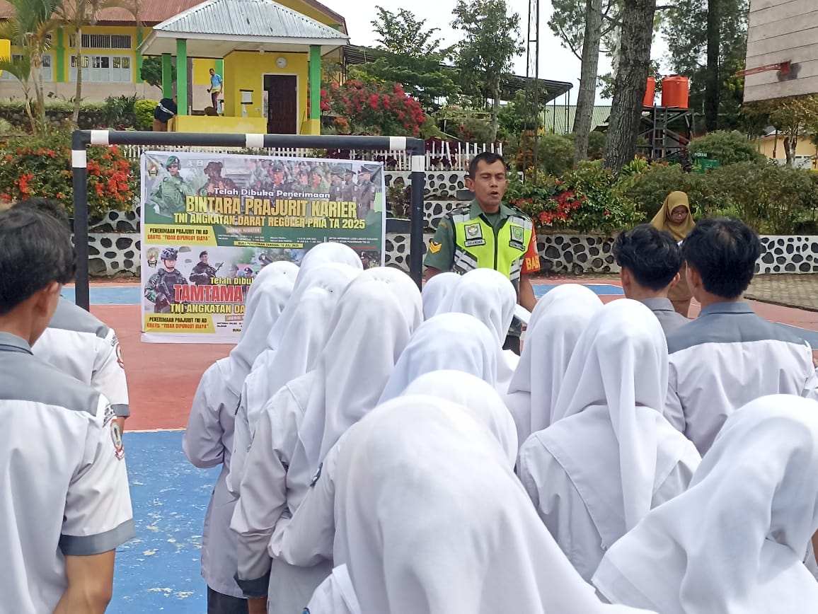 Keizalinnews.Online|Redelong-: Guna memberikan informasi tentang Rekrutmen Bintara dan Tamtama TNI – AD, kepada generasi muda Babinsa Koramil 01/Bandar Sosialisasikan kepada siswa/i SMA bertempat di Kecamatan Bandar, Kabupaten Bener meriah” Selasa 15 April 2025