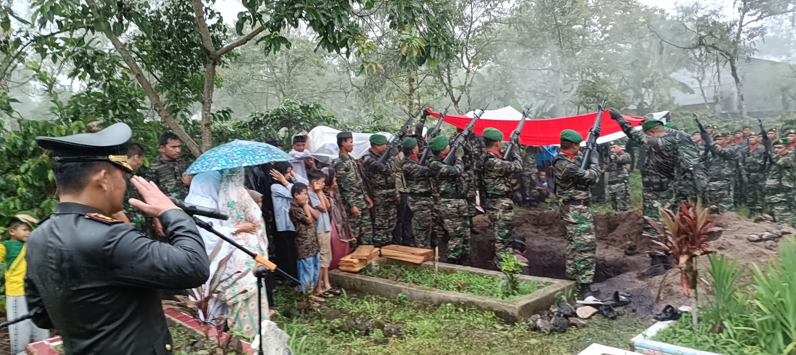 “Pemakaman militer merupakan hak dan penghormatan terakhir yang diperuntukkan bagi setiap prajurit TNI yang meninggal dunia sebagai penghargaan dari negara atas jasa-jasa serta darma baktinya kepada Negara Kesatuan Republik Indonesia”, Kata Dandim 0119/BM.