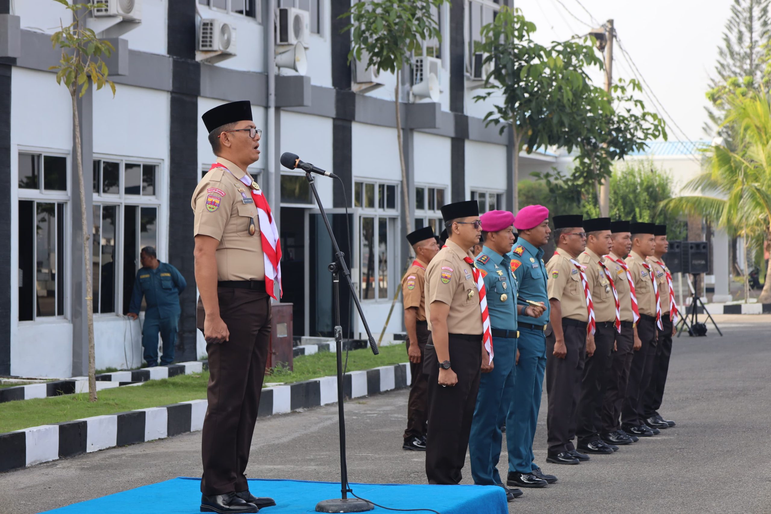 KeizalinNews.Online Belawan — Komandan Pangkalan Utama TNI Angkatan Laut I (Dantamal I) Brigjen TNI (Mar) Jasiman Purba, S.E., CHRMP., diwakili Aspotmar Danlantamal I Kolonel Marinir Hendra Zarnadi, memimpin Apel Gabungan Pramuka Saka Bahari Kwarda Sumut Tahun 2025, bertempat di Lapangan Apel Mako Lantamal I, dilanjutkan dengan mengikuti kegiatan secara Vicon di Gedung OB. Syaaf Mako Lantamal I, Jalan Serma Hanafiah No. 01 Belawan Sumatera Utara, Senin (28/4/2025).