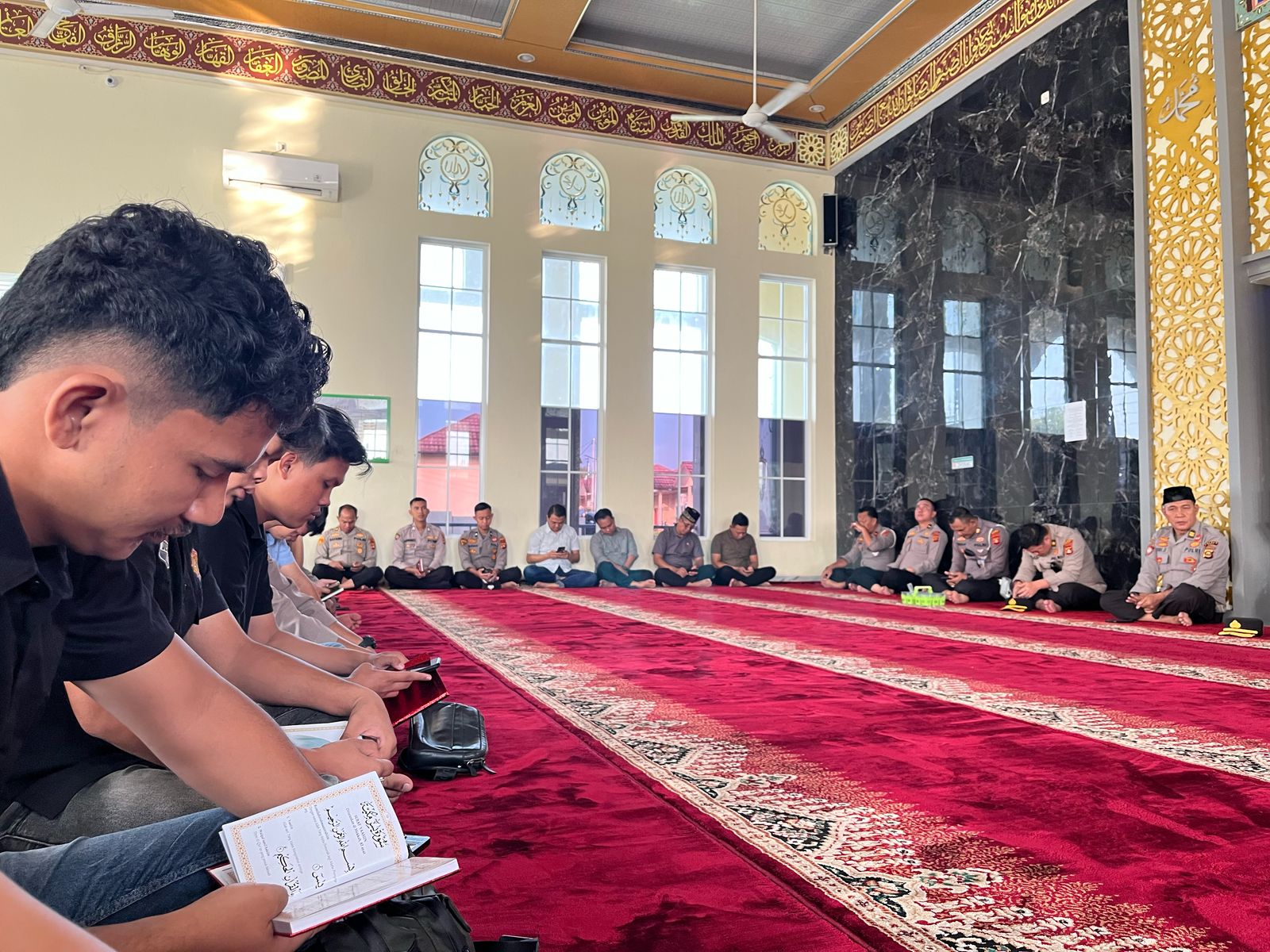 Kapolres PALI, AKBP Yunar H. P. Sirait, S.H., S.I.K., M.I.K., menyampaikan bahwa kegiatan ini bukan sekadar rutinitas keagamaan, tetapi juga wadah spiritual untuk memanjatkan doa bersama demi kekuatan dan keselamatan seluruh personel.