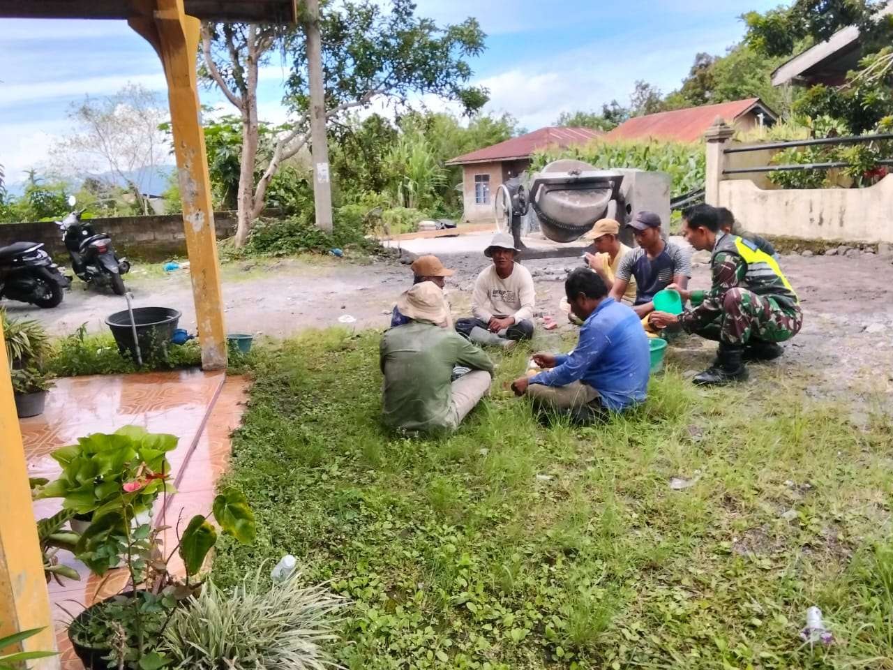 Keakraban tersebut terlihat saat warga dan Babinsa sedang istirahat bersama dan bersendau gurau pada saat usai melaksanakan gotong royong.