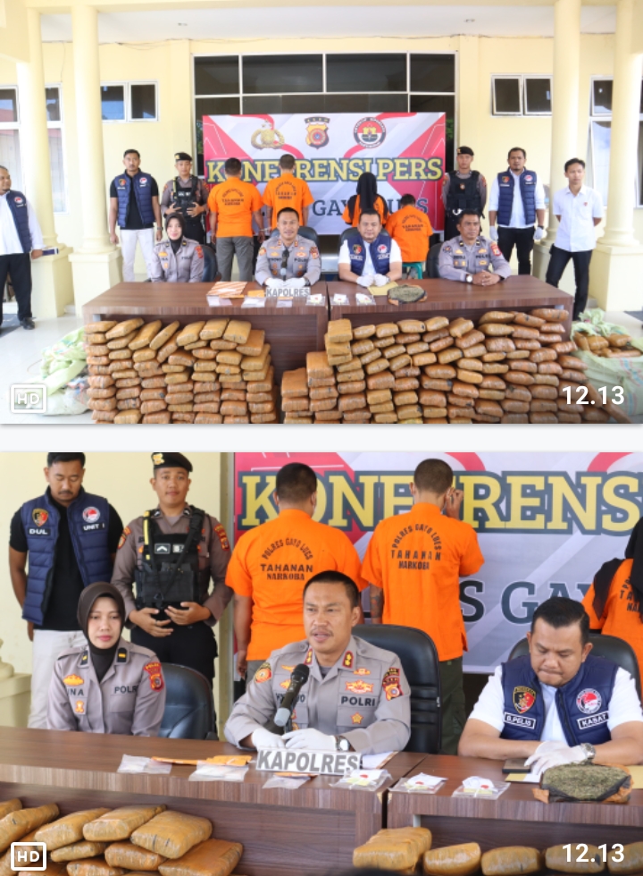 “Selama lima bulan terakhir, medio Januari—Mei, kami telah berhasil mengungkap 12 kasus narkotika berupa sabu, ganja, dan ekstasi. Dari pengungkapan tersebut juga telah diamankan 18 orang tersangka, yang terdiri dari 5 tersangka kasus ganja, 9 tersangka kasus sabu, dan 4 tersangka kasus ekstasi,” ungkap Kapolres Gayo Lues AKBP Hyrowo, melalui Kasatresnarkoba Iptu Bambang Hari Hermansyah Putra Pelis, dalam konferensi pers, Rabu, 7 Mei 2025.