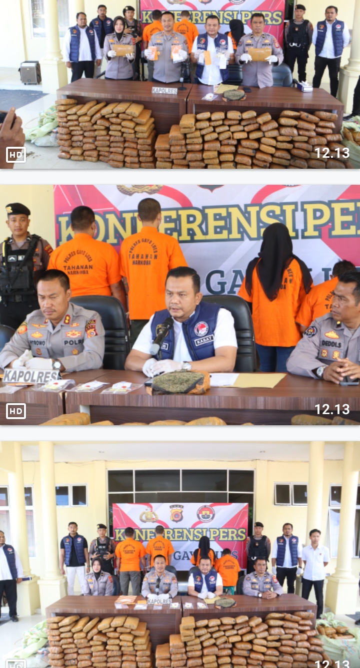 “Selama lima bulan terakhir, medio Januari—Mei, kami telah berhasil mengungkap 12 kasus narkotika berupa sabu, ganja, dan ekstasi. Dari pengungkapan tersebut juga telah diamankan 18 orang tersangka, yang terdiri dari 5 tersangka kasus ganja, 9 tersangka kasus sabu, dan 4 tersangka kasus ekstasi,” ungkap Kapolres Gayo Lues AKBP Hyrowo, melalui Kasatresnarkoba Iptu Bambang Hari Hermansyah Putra Pelis, dalam konferensi pers, Rabu, 7 Mei 2025.