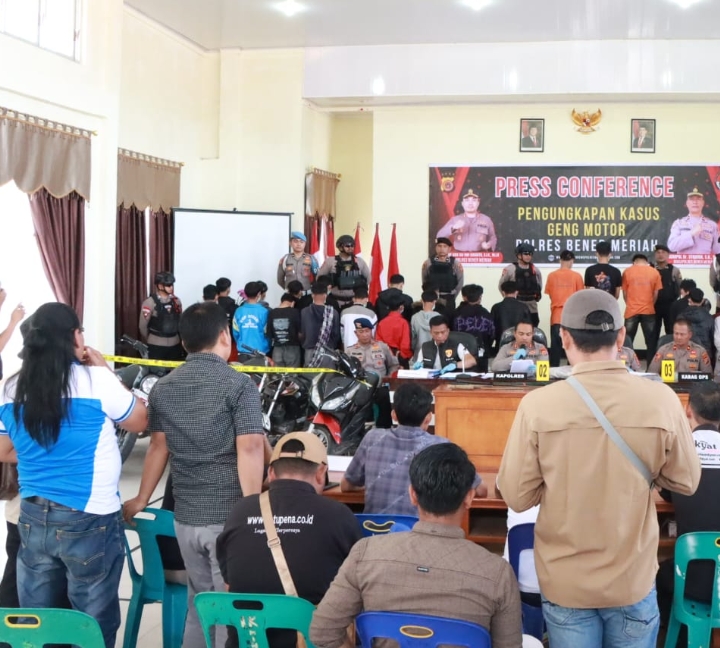 Keizalinnews.web.id| Redelong-: Kepolisian Resor Bener Meriah menggelar konferensi pers terkait pengungkapan kasus kekerasan terhadap anak serta penindakan terhadap aktivitas geng motor yang melibatkan sejumlah remaja di wilayah Kabupaten Bener Meriah (8/5/2025).