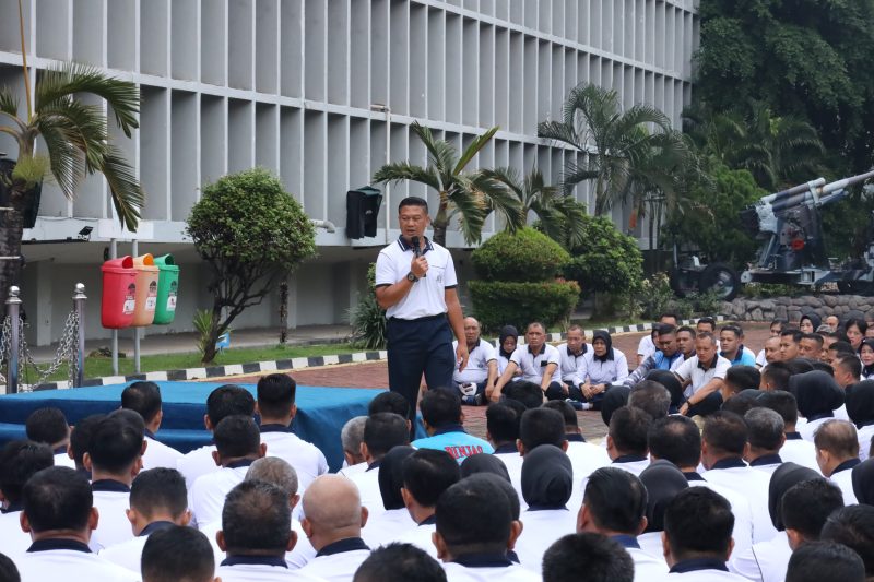 KeizalinNews.web.id Jakarta —Dalam rangka menjalin kebersamaan serta meningkatkan kebugaran dan kesehatan tubuh, Komandan Lantamal III Jakarta Brigjen TNI (Mar) Harry Indarto, S.E., M.M. melaksanakan olahraga besama dengan seluruh prajurit dan Pegawai Negeri Sipil (PNS), di lapangan apel Mako Lantamal III, Jakarta Utara, Jumat (9/5/2025).