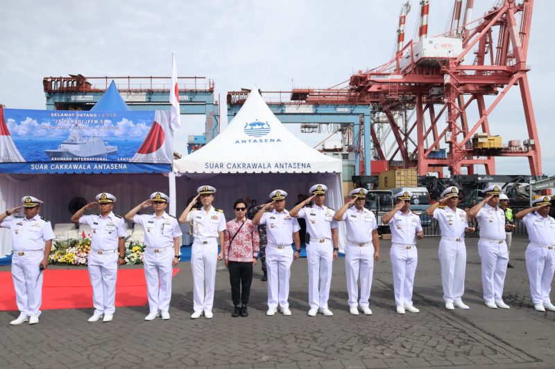 KeizalinNews.web.id Jakarta — Komandan Lantamal III Jakarta, Brigjen TNI (Mar) Harry Indarto, S.E., M.M. yang diwakili oleh Kolonel Laut (T) Saut Lagu Jendri T. Panjaitan, S.E., M.Tr.Opsla. menyambut kedatangan kapal perang Jepang JS Yahagi (FFM-5) di Dermaga Tanjung Priok, Jakarta Utara, Senin (12/5/25).