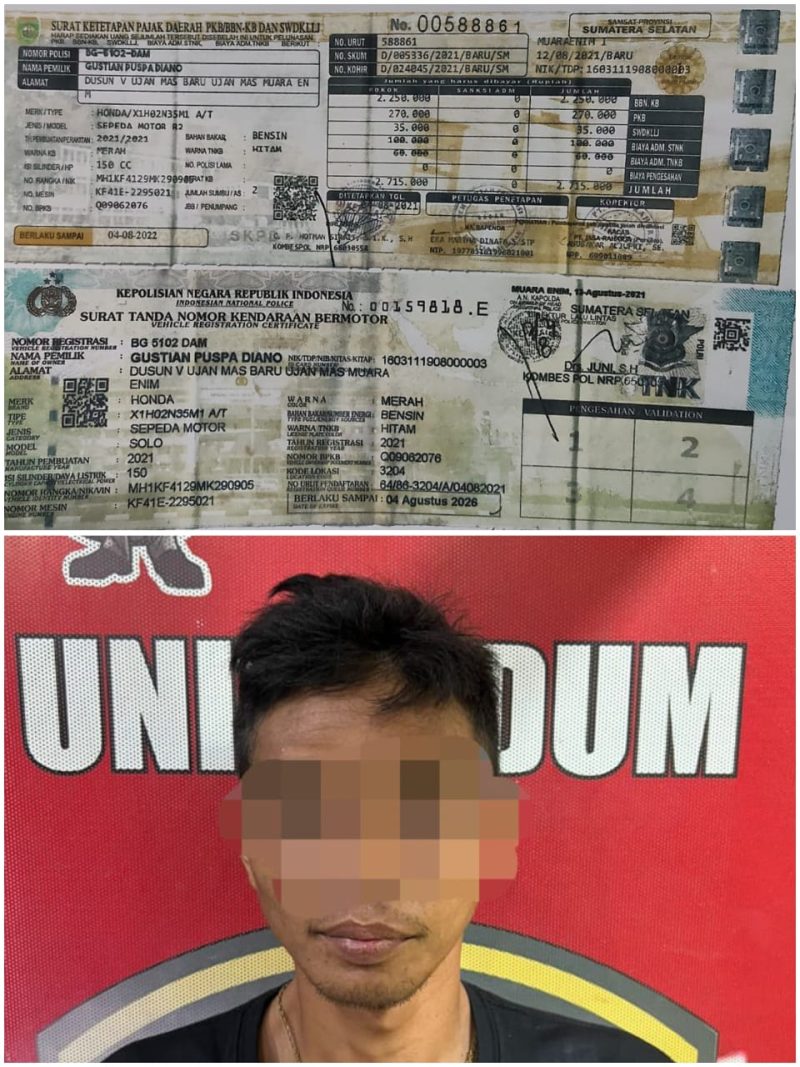 Kasus ini berawal dari laporan korban atas nama Gustian Puspa Diando (24), warga Desa Ujan Mas Baru, Kecamatan Ujan Mas, Kabupaten Muara Enim, yang kehilangan sepeda motor Honda Vario miliknya usai dipinjam oleh tersangka dengan alasan akan menjemput temannya.