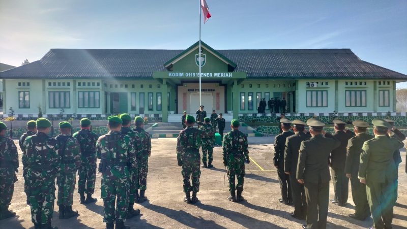“Bertindak sebagai Inspektur Upacara, Dandim 0119/BM Letkol Inf Ahmad Fauzi, yang diwakili PGS Pasi Intel Kapten Inf Trimo SH. Komandan Upacara Kapten Inf Jan Suhardi dan Perwira Upacara Letda Kav Bambang”
