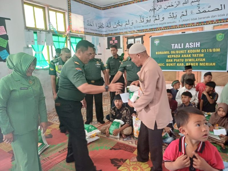 Keizalinnews.web.id|Redelong-:Kodim 0119/BM – Sebagai bentuk kepedulian terhadap sesama dan menyambut Hari Raya Idul Adha 1446 H/2025 M Koramil 06/Bukit menggelar kegiatan Tali Asih santunan kepada Anak Yatim dan Piatu yang berada di wilayah Kecamatan Bukit. ini menjadi wujud nyata kepedulian TNI dalam membantu masyarakat, khususnya anak-anak yang membutuhkan perhatian dan dukungan, Selasa (03/06/2025).