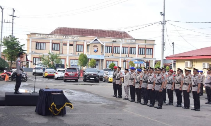 KeizalinNews.Com,Bone (Sulsel)– Sejumlah pejabat di lingkungan Polres Bone dan kapolsek jajaran hari ini resmi melaksanakan serah terima jabatan (sertijab). Upacara sertijab yang dipimpin langsung oleh Kapolres Bone, AKBP Sugeng Setio Budhi, S.IK., M.Tr.Opsla., ini berlangsung di halaman Mapolres Bone. Selasa sore, 10/6/2025.