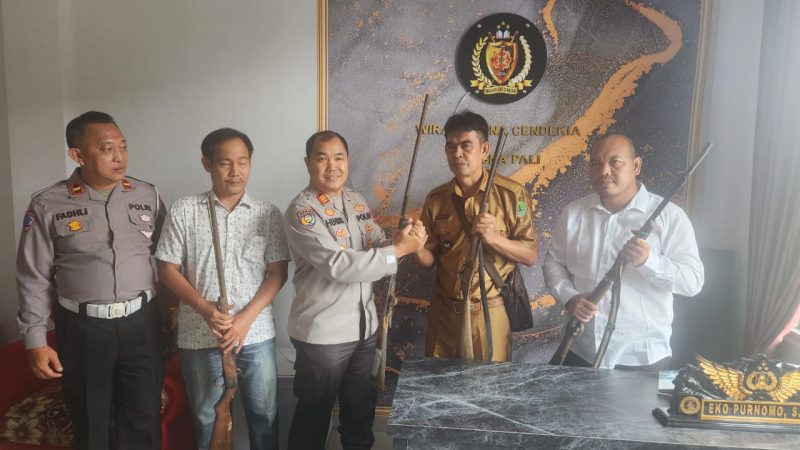 PALI – Kesadaran masyarakat Kabupaten Penukal Abab Lematang Ilir (PALI) terhadap keamanan dan ketertiban terus meningkat. Hal ini dibuktikan dengan diserahkannya empat pucuk senjata api rakitan (senpira) jenis kecepek laras panjang oleh Kepala Desa Sungai Baung, Sulhandi (54), kepada Satuan Intelkam (Sat Intelkam) Polres PALI pada Senin, 16 Juni 2025.