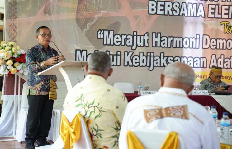Ia pun mengingatkan kembali filosofi hidup masyarakat Papua yang dikenal dengan konsep tiga tungku yaitu adat, gereja, dan pemerintah sebagai pilar utama dalam menopang pembangunan yang adil dan bermartabat.