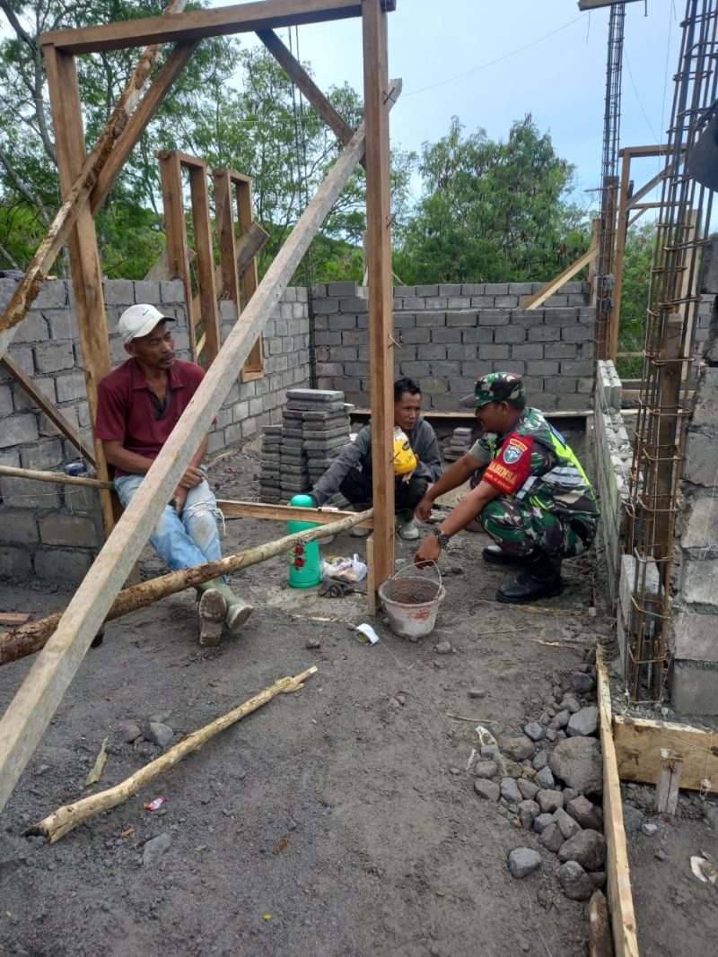 Tekankan Keselamatan Saat Bekerja, Babinsa Sambangi Warganya Saat Membangun Rumah