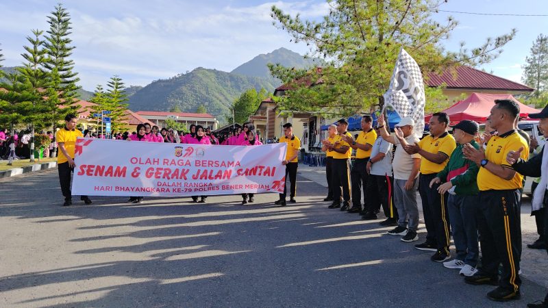 Keizalinnews.web.id|Redelong-:Dalam rangka menyemarakkan Hari Bhayangkara ke-79, Polres Bener Meriah menggelar kegiatan senam dan jalan santai bersama di lapangan Tribrata, Polres Bener Meriah pada Minggu pagi (22/6/2025). Kegiatan ini dipimpin langsung oleh Kapolres Bener Meriah AKBP Aris Cai Dwi Susanto, S.I.K., M.I.K. dan turut dihadiri oleh unsur Forkopimda Kabupaten Bener Meriah.
