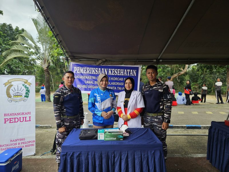 KeizalinNews.web.id Bintan — Jalasenastri Cabang 5 Korcab IV Daerah Jalasenastri Armada I Lanal Bintan berkolaborasi dengan ibu-ibu organisasi wanita TNI-Polri melaksanakan kegiatan pemeriksaan kesehatan umum pada kegiatan olahraga bersama TNI-POLRI di Mako Brimob Tanjung Uban, Sabtu (21/06/2025).