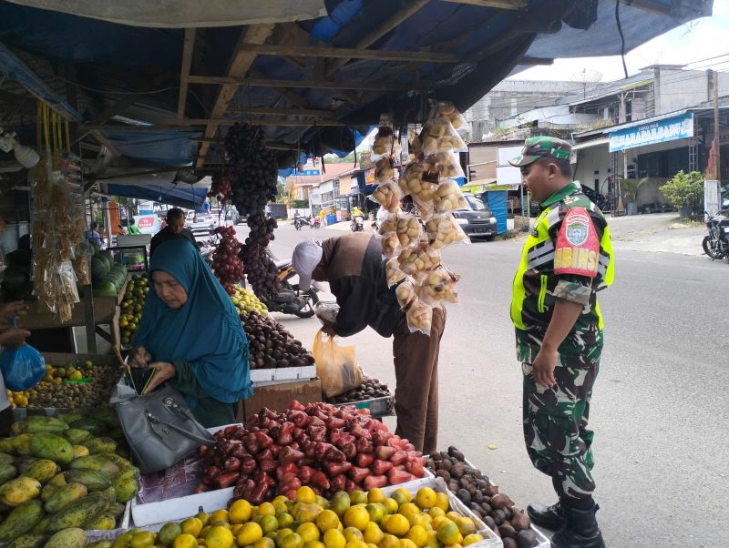 Keizalinnews.web.id|Redelong-:Kodim 0119/BM – Dengan sapaan dan senyuman khas seorang Aparat Teritorial, Babinsa Koramil 03/Timang Gajah Kopda Beni Sutopo melaksanakan komsos dengan warga binaan yang berprofesi sebagai pedagang buah di Desa Meriah Jaya, Kecamatan Gajah Putih, Kabupaten Bener Meriah, Senin (23/06/2025).