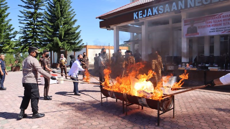 Keizalinnews.web.id|Redelong-:Kejaksaan Negeri Bener Meriah melaksanakan kegiatan Pemusnahan Barang Bukti yang Telah Berkekuatan Hukum Tetap (Inkracht) pada Selasa, 30 Juni 2025, sekitar pukul 10.00 WIB. Kegiatan berlangsung di halaman Kantor Kejari Bener Meriah dan turut dihadiri sejumlah unsur Forkopimda.