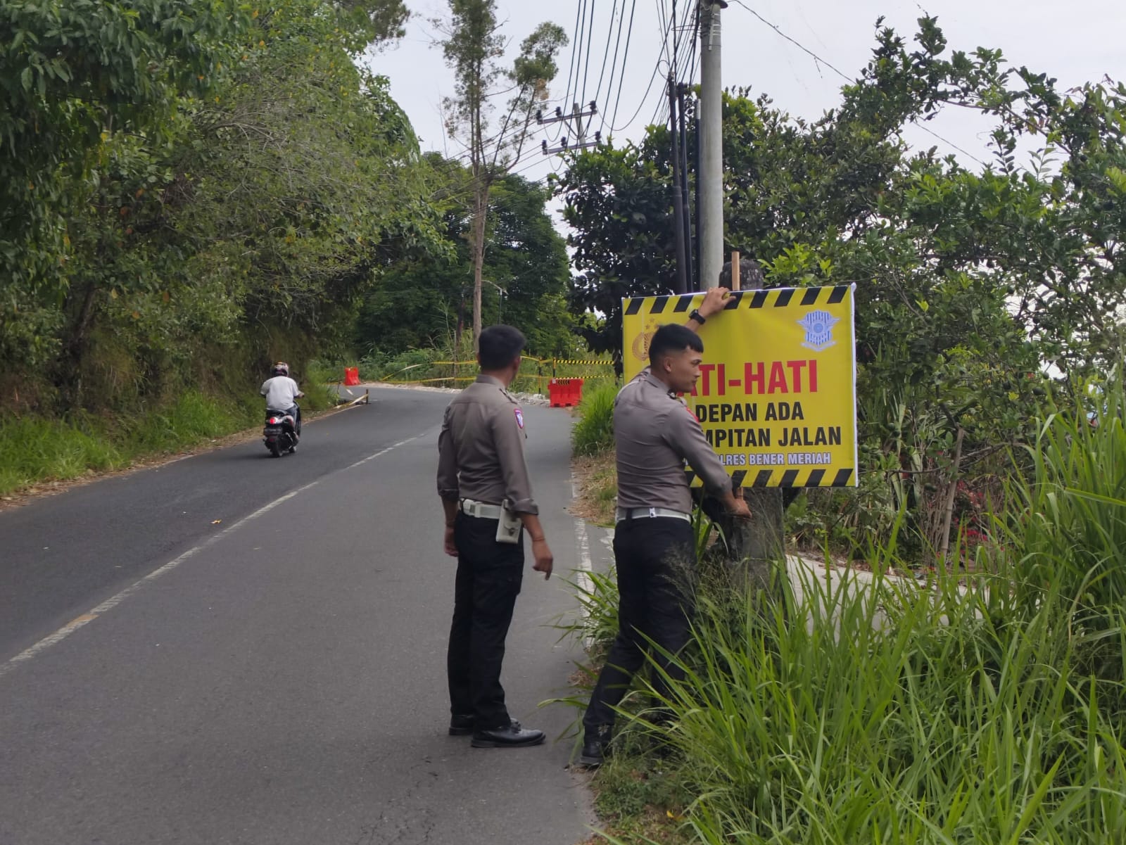 Keizalinnews.web.id|Redelong-:Dalam upaya meningkatkan keselamatan dan kesadaran berlalu lintas, Kapolres Bener Meriah melalui Kasat Lantas IPTU Syafarudin, S.H., memberikan himbauan kepada masyarakat dengan cara memasang rambu-rambu lalu lintas di sejumlah titik rawan kecelakaan.