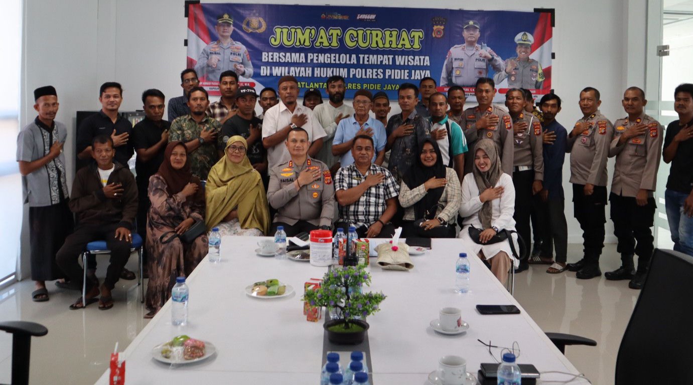 Keizalinnews.web.id PIDIE JAYA– Dalam semangat membangun sektor pariwisata yang inklusif dan berkelanjutan, Polres Pidie Jaya menggelar forum Jumat Curhat Presisi bersama para pengelola destinasi dan pelaku usaha wisata di Gedung Satpas Prototype Polres Pidie Jaya. Jumat, 4 Juli 2025
