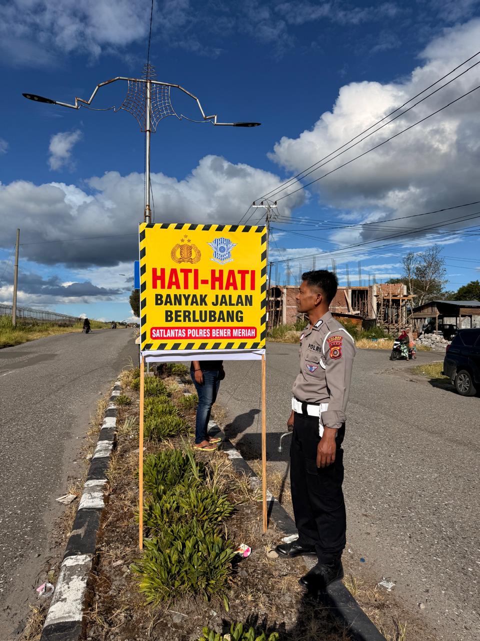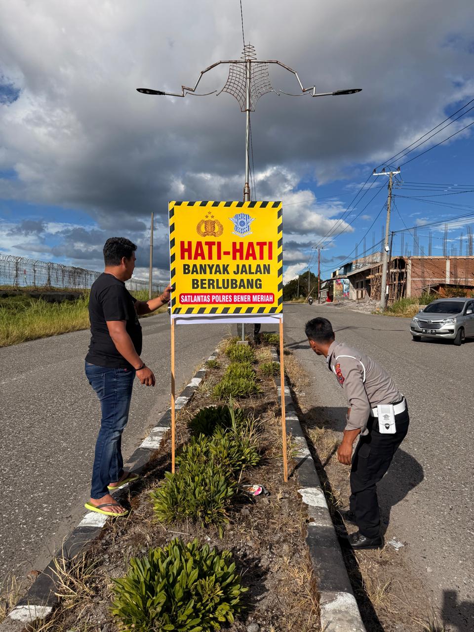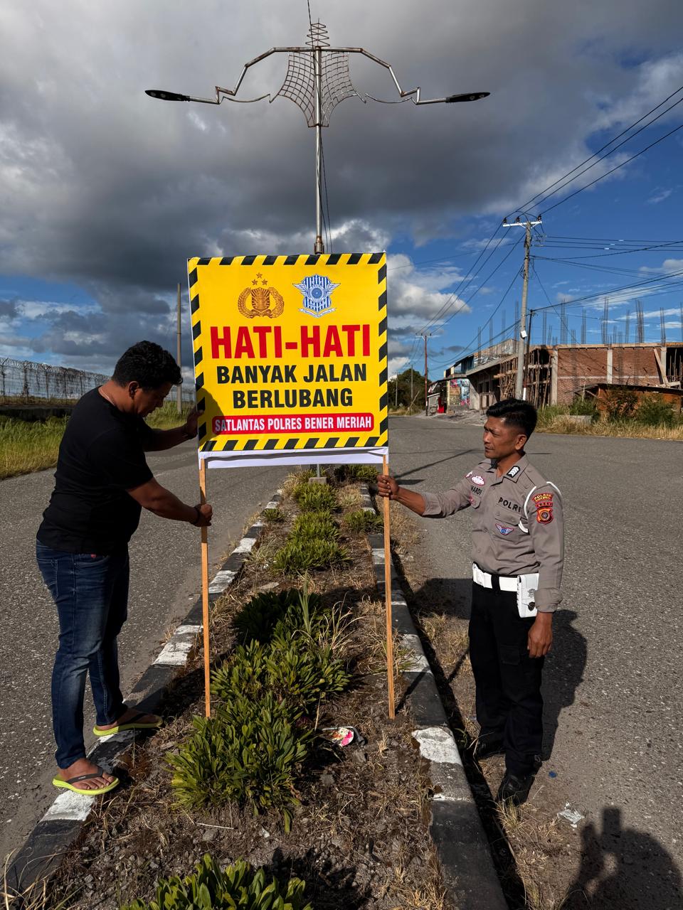 Keizalinnews.web.id|Redelong-:IPTU Syafarudin, S.H., selaku Kasat Lantas Polres Bener Meriah, melaksanakan kegiatan pemasangan spanduk imbauan keselamatan berlalu lintas di sejumlah titik strategis,yang di laksanakan pada hari Jum,at 11-07-25.