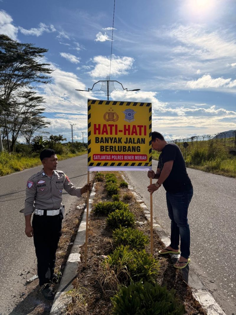 Keizalinnews.web.id|Redelong-:IPTU Syafarudin, S.H., selaku Kasat Lantas Polres Bener Meriah, melaksanakan kegiatan pemasangan spanduk imbauan keselamatan berlalu lintas di sejumlah titik strategis,yang di laksanakan pada hari Jum,at 11-07-25.