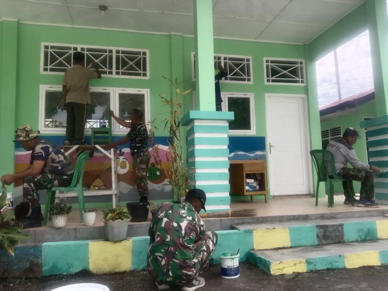 Keizalinnews.web.id|Redelong-:Guna meningkatkan kenyamanan dan mutu pendidikan anak usia dini, jajaran Babinsa koramil 03/TG melaksanakan kegiatan pembenahan di Yayasan TK Kartika yang berada di wilayah binaannya.Kegiatan tersebut mencakup pengecatan, pembersihan lingkungan, serta perbaikan ringan pada fasilitas sekolah” Jumat 11 Juli 2025