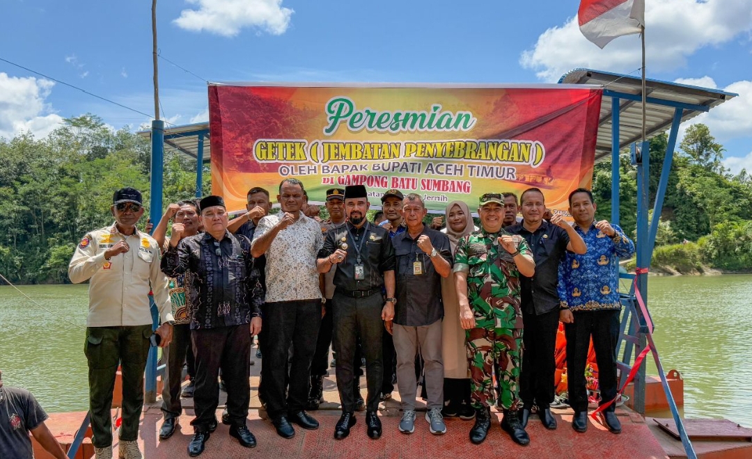 ACEH TIMUR— Bupati Aceh Timur, Iskandar Usman Al-Farlaky, S.Hi, M.Si meresmikan alat transportasi penyeberangan (getek) antara Gampong Batu Sumbang dengan Pante Kera di Kecamatan Simpang Jernih, Kamis (17/7/2025).
