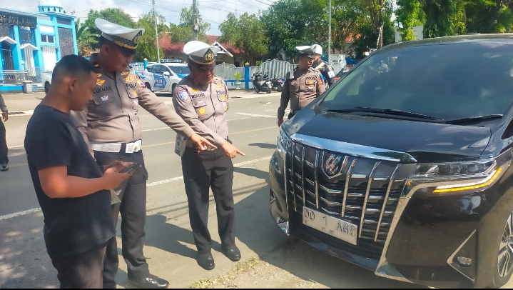 Berdasarkan pantauan, petugas tampak menindak tegas pengemudi yang kedapatan memasang TNKB tidak sesuai sepesifikasi teknis (Spektek) pada mobilnya.