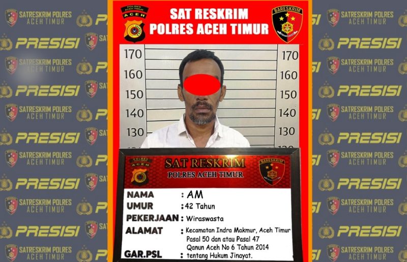 Keizalinnews Aceh Timur Nanggroe Aceh Darussalam NAD – seorang pria yang berinisial AM (42), warga Kecamatan Indra Makmur, Kabupaten Aceh Timur diamankan ke Polres Aceh Timur atas dugaan jarimah pemerkosaan dan atau jarimah pelecehan seksual terhadap anak sebagaimana dimaksud dalam pasal 50 dan atau pasal 47 Qanun Aceh Nomor 6 Tahun 2014 tentang Hukum Jinayat. AM diduga melakukan jarimah pemerkosaan dan atau jarimah pelecehan seksual terhadap anak tirinya yang masih berusia 10 tahun.
