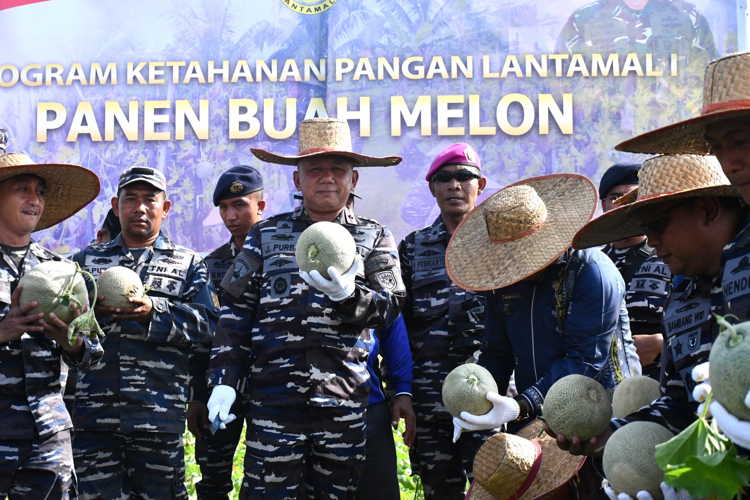 Dukung Program Ketahanan Pangan Melalui Bintahwilmar, Lantamal I Tabur Bibit Ikan Nila dan Panen Buah Melon