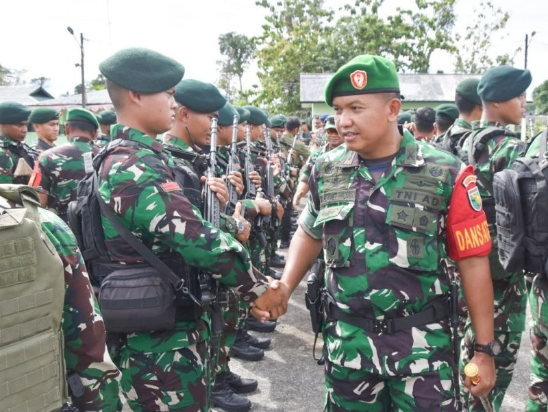 Lebih lanjut Dandim menyampaikan beberapa hal yang harus dipedomi dan dilaksanakan selama melaksanakan tugas di wilayah Papua diantaranya agar selalu awali dengan doa dalam setiap pelaksanaan tugas, selalu waspada dalam setiap pergerakan serta dimanapun berada, selalu baca perkembangan situasi yang ada, jalin komunikasi dan koordinasi dengan pihak-pihak Kepolisian dan Pemerintah setempat, tingkatkan kemanunggalan TNI dengan rakyat, tokoh masyarakat, tokoh adat serta elemen masyarakat lainnya, jaga kesehatan diri dimanapun berada demi kelancaran pelaksanaan tugas dan junjung tinggi Sapta Marga, Sumpah Prajurit serta 8 Wajib TNI.