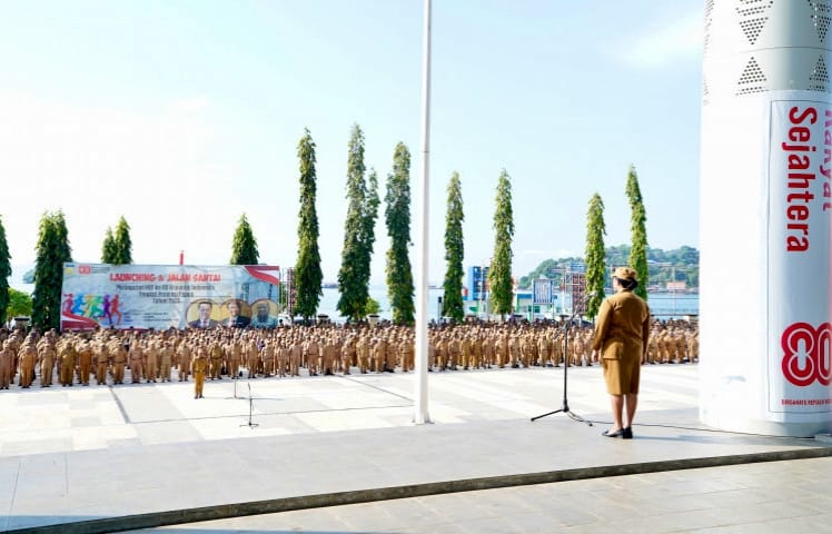 KeizalinNews.web.id | Jayapura, Papua –  Penjabat Sekretaris Daerah Provinsi Papua, Suzana D. Wanggai, memimpin Apel Gabungan Aparatur Sipil Negara (ASN) di halaman Kantor Gubernur Papua, Senin (4/8/2025).