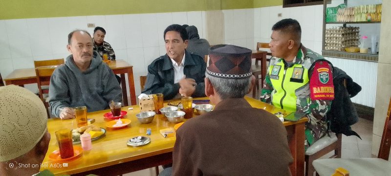 Warung tersebut terlihat cukup ramai, karena banyak pula warga yang berkumpul. “Ya Sudah, sekalian sarapan pagi sambil melakukan kegiatan komsos untuk lebih mendekatkan diri dan menjalin silaturahmi, dengan harapan dapat mewujudkan kemanunggalan TNI dengan Rakyat”, ujarnya.