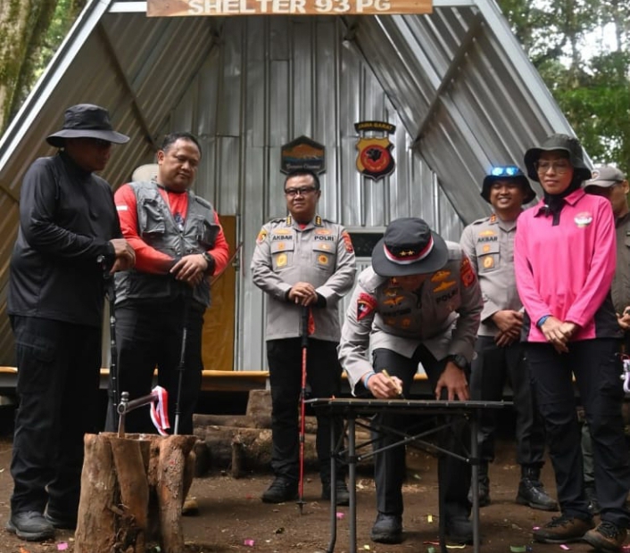 Kuningan – Kapolda Jawa Barat Irjen Pol. Rudi Setiawan meresmikan Shelter Pesat Gatra 93 yang berlokasi di Pos 3 Jalur Pendakian Gunung Ciremai via Palutungan, Jumat (8/8/2025). Peresmian ini sekaligus menjadi bagian dari rangkaian kegiatan pendakian yang dilaksanakan Polda Jabar dalam rangka menyambut HUT ke-80 Kemerdekaan Republik Indonesia.
