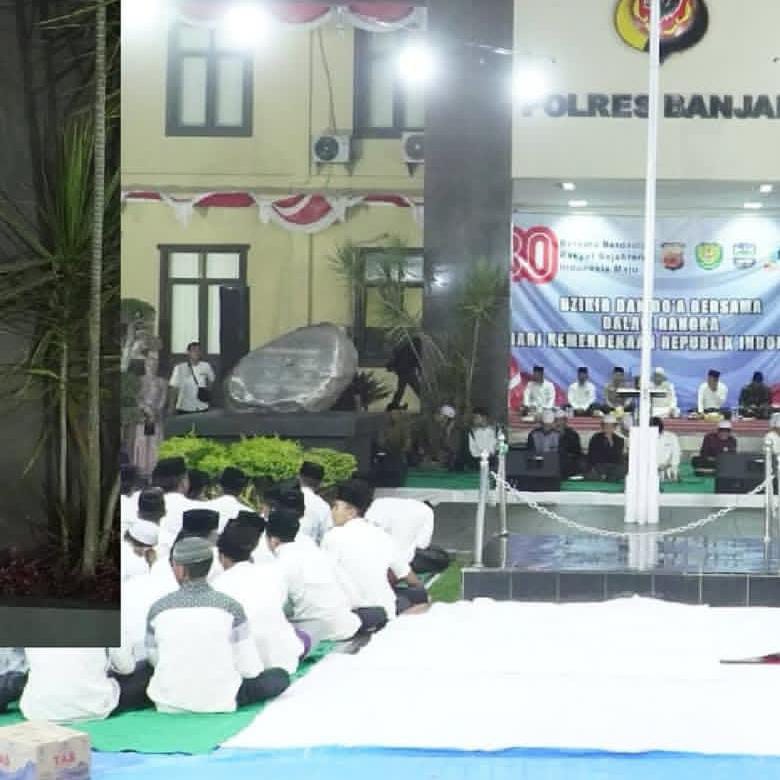 BANJAR – Menyambut Hari Ulang Tahun ke-80 Kemerdekaan Republik Indonesia, Polres Banjar menggelar Dzikir dan Doa Bersama di halaman Mapolres Banjar pada Minggu malam (10/8/2025). Kegiatan ini dihadiri lebih dari 500 peserta dari berbagai elemen masyarakat, hasil sinergi Polres Banjar dengan Pengurus Nahdlatul Ulama (NU) Kota Banjar.