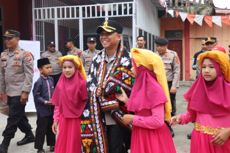 Kapolres Aceh Tengah, AKBP Muhamad Taufiq, S.I.K., M.H., bersama Wakapolres dan Pejabat Utama (PJU) Polres, menyerahkan langsung 20 paket sembako serta tali asih kepada para penghuni panti. Kehadiran rombongan disambut hangat dengan tarian adat Gayo, Tari Guel, diiringi lambaian bendera tangan merah putih dari anak-anak panti, menciptakan suasana meriah sekaligus penuh keakraban.