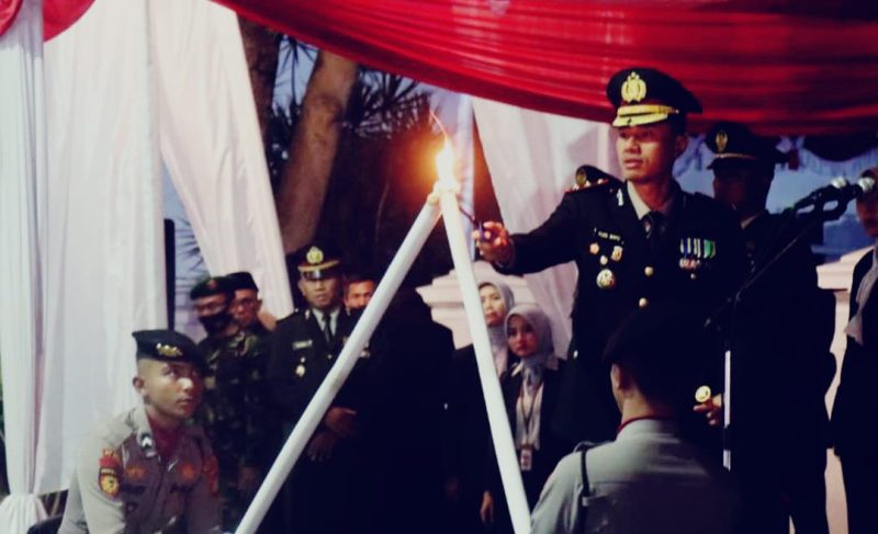 Garut Kota – Dalam rangka memperingati Hari Ulang Tahun (HUT) ke-80 Proklamasi Kemerdekaan Republik Indonesia, Polres Garut bersama Forkopimda Kabupaten Garut menyelenggarakan Upacara Taptu dan Pawai Obor tingkat Kabupaten Garut pada Sabtu malam (16/8/2025).