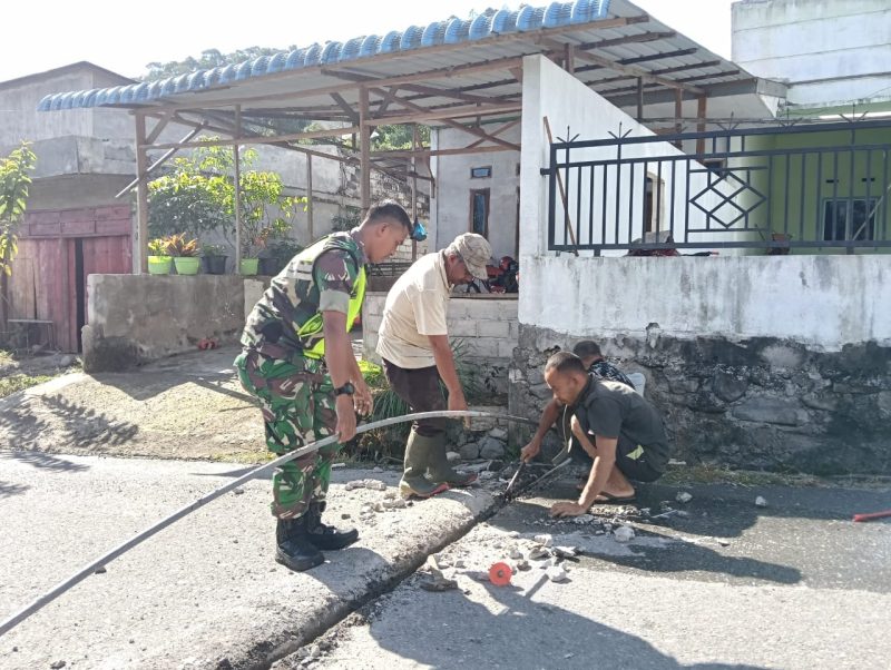 Keizalinnews.web.id|Redelong-:Kodim 0119/BM – Anggota Babinsa Koramil 06/Bukit Serda Rahmatsyah Wali bersama Masyarakat melaksanakan kegiatan Gotong Royong perbaikan saluran air untuk kebutuhan Masyarakat di Desa Waq Pondok Sayur, Kecamatan Bukit, Kabupaten Bener Meriah, Sabtu (23/08/2025).
