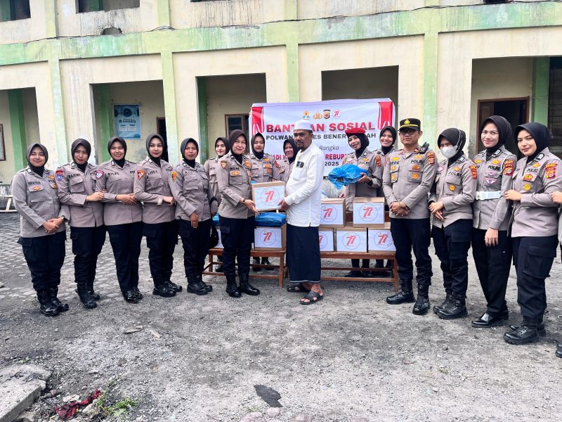 Keizalinnews.web.id|Redelong-:Dalam rangka memperingati Hari Jadi Polisi Wanita (Polwan) ke-77 tahun 2025, Polwan Polres Bener Meriah menggelar kegiatan bakti sosial dengan menyalurkan bantuan sembako kepada masyarakat kurang mampu dan Dayah Madinatuddiniyah Babussalam yang tertimpa musibah kebakaran, Senin (25/8/2025).
