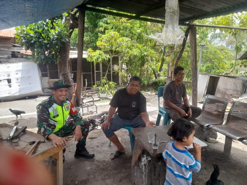 Kali ini, Babinsa Desa Bener Meriah Sertu Indra Riadi mnyambangi warga yang lagi duduk santai di halaman rumah, usai berkelilig kampung untuk memonitoring secara langsung wilayah binaan.