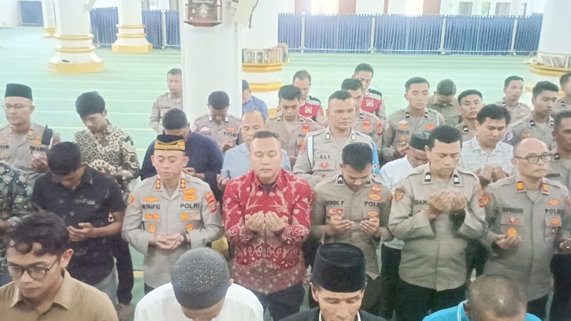 Ibadah shalat gaib dilaksanakan di Masjid Ruhama Takengon, Jumat (29/8/2025) seusai shalat Ashar, dipimpin oleh Tgk. Annas Nurdin. Kapolres Aceh Tengah AKBP Muhamad Taufiq, S.I.K., M.H., hadir bersama jajaran pejabat utama, personel Polres, dan masyarakat setempat.